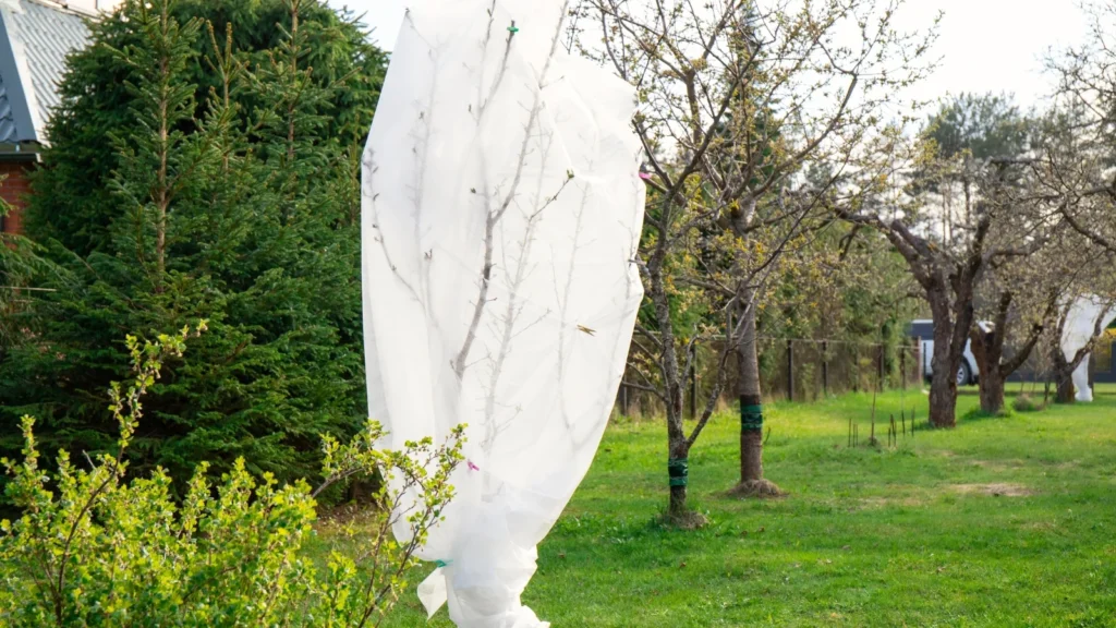 - Frost cloths, row covers, or old sheets: Drape these over small trees, securing edges to the ground to trap warmth.