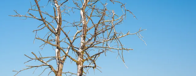 - Bare branches: Sections of the canopy look thin or lifeless compared to others.