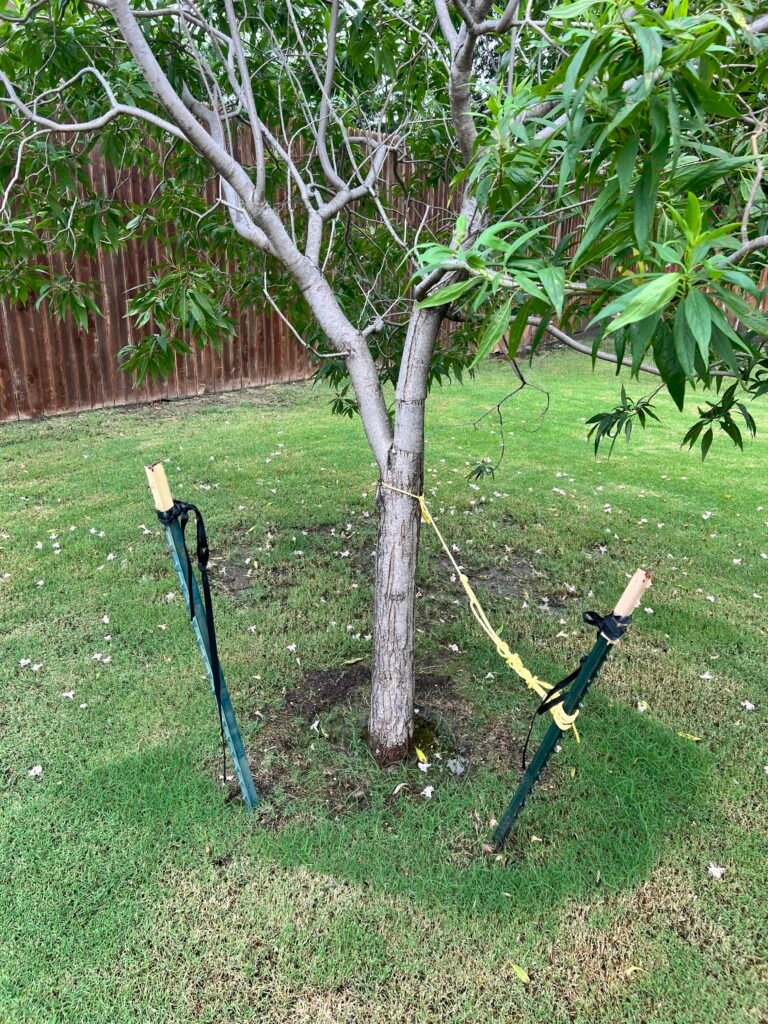 Inspect ties often to ensure they aren’t too tight or rubbing against the trunk. Adjust or remove as the tree grows.