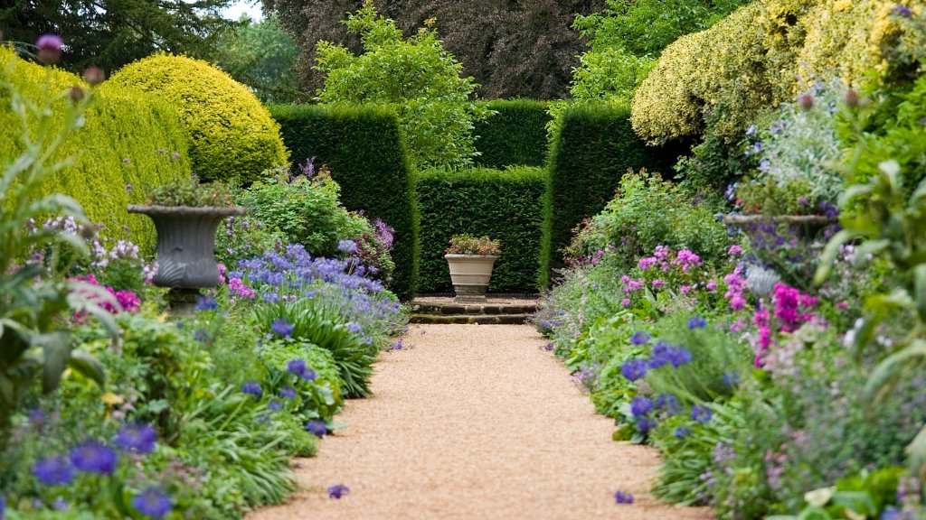 Cottage gardens, sloped yards, and landscapes with natural terrain.