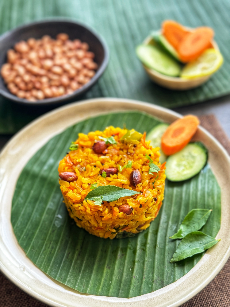 Vegetables add color, nutrients, and crunch to Masala Poha: