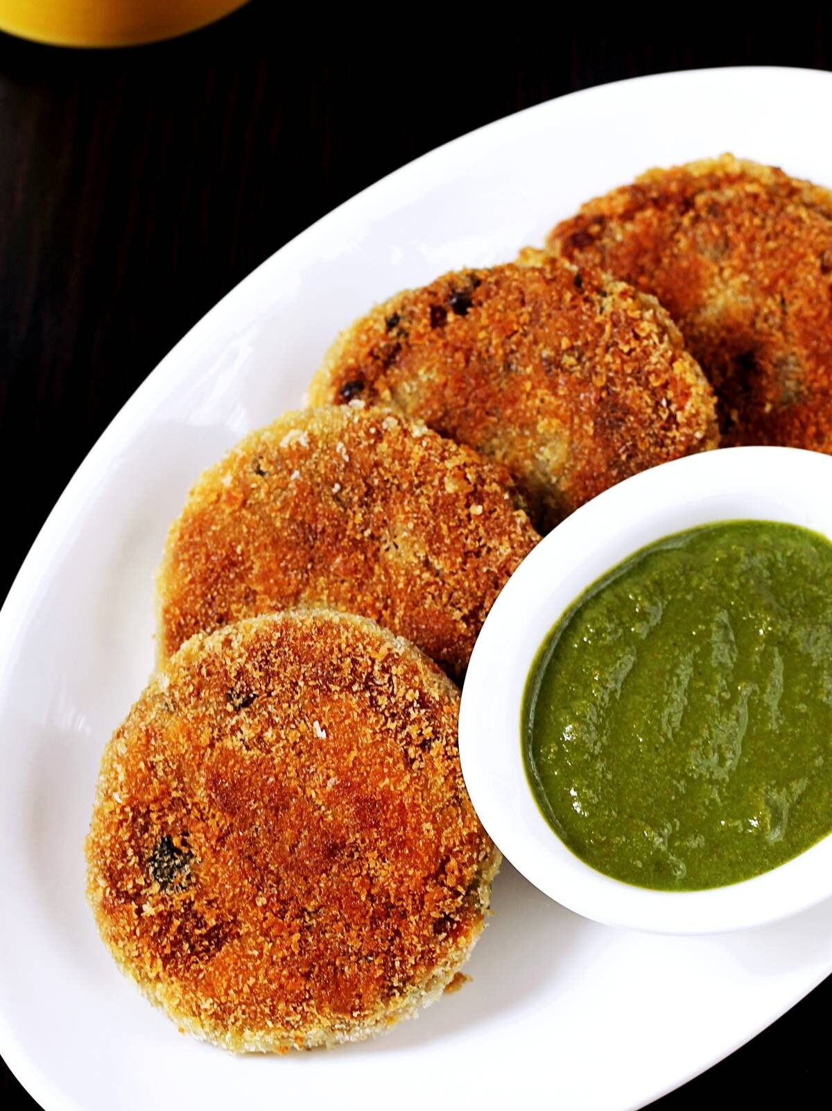 Serve the chutney alongside the cutlets for a tangy, refreshing dip. For a fun Halloween touch, drizzle some beetroot juice or carrot puree in a swirl on top for a spooky effect.