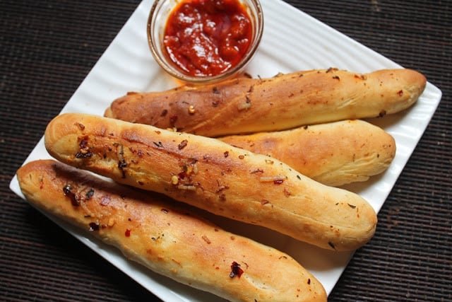 - Brush each breadstick with a little olive oil or melted butter before baking.