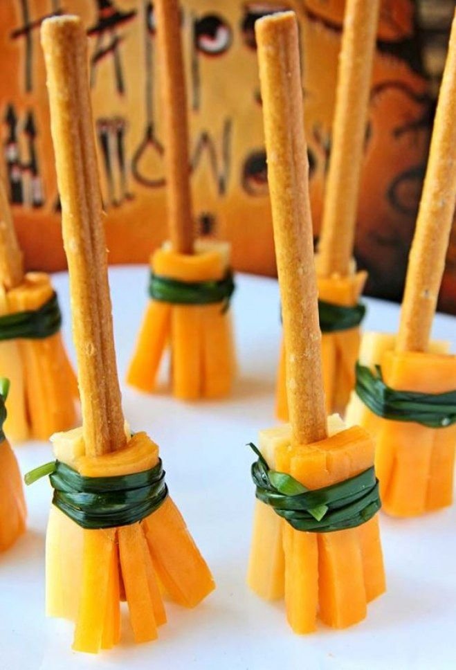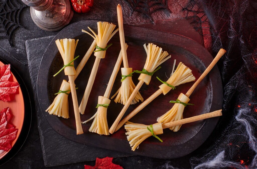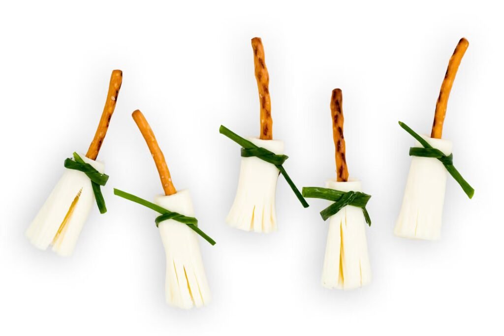 - For presentation, tie a tiny piece of chive or string cheese around the top of the broom bristles — it gives the illusion of a tied broom and adds a cute touch.