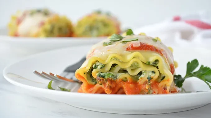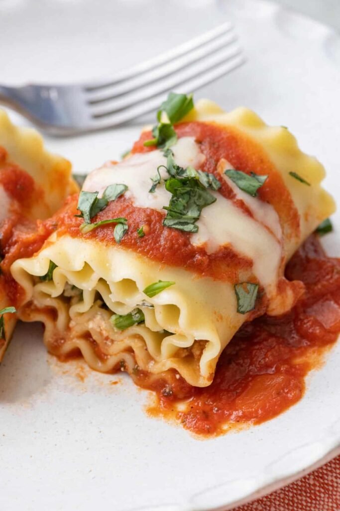 Carefully scoop out a few lasagna rolls and arrange them on a serving plate. Add a sprinkle of fresh basil for color and drizzle a touch of olive oil for that extra shine.