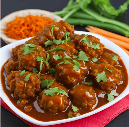 Enter the Creepy Veg Manchurian — a spooky twist on the beloved Indo-Chinese classic that’s a hit at parties and potlucks alike. Crispy veggie balls drenched in a tangy, garlicky sauce, served with an eerie, Halloween-inspired presentation, this dish is perfect for those who want their festive menu to have both flavor and flair.